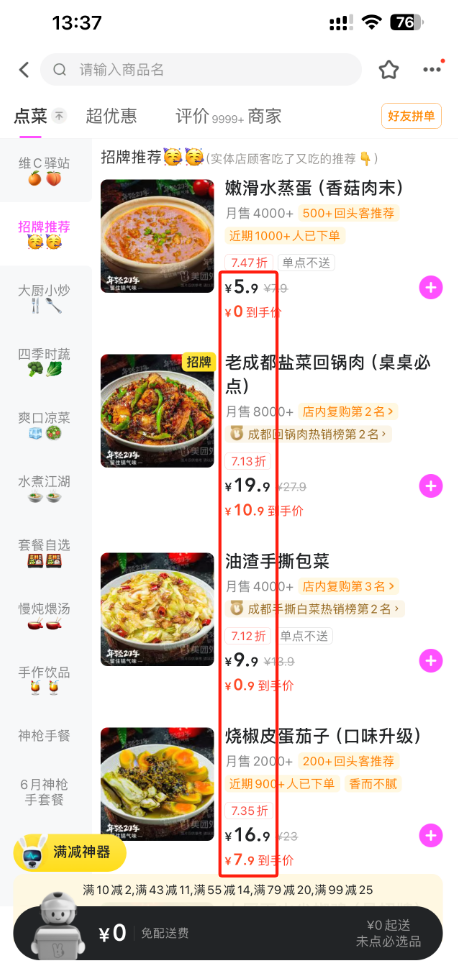 定菜品价格要留出一定利润空间做活动,这点非常关键,因为对于一个刚上线的新店来说,没什么名气,只能靠优惠吸引顾客初次尝试,打开市场。有些老板抱怨不做活动活不下去,做了活动“死更快”,就是因为前期定价时没有留足活动利润,一做活动就赔本。