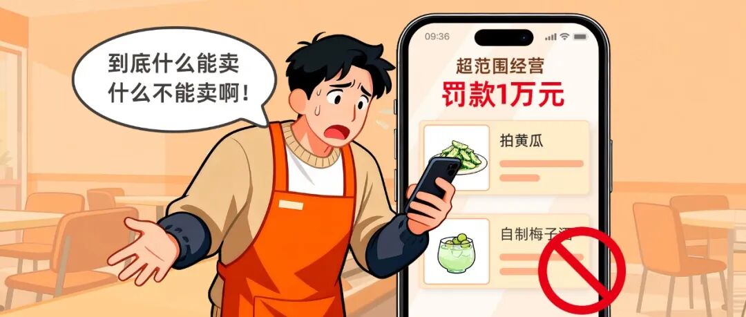 有家开饭店的同行之前已经踩过一次坑了,在许可证上增加了冷食类许可,但没多久又因为售卖红牛、东鹏特饮这类保健饮料,缺少“特殊食品销售”许可,再次中招;