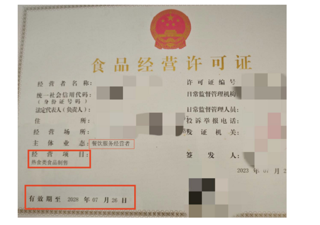 作为餐饮商户,李老板制售餐饮商品时,必须以市场监管局颁发的《食品经营许可证》上核定的项目为准,实际售卖的品类一旦超出许可范围,就算违规。